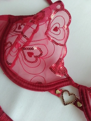 Leicht transparent mit sexy Details, Herzen mit strass, aufgesetzte Pailletten Herzen
